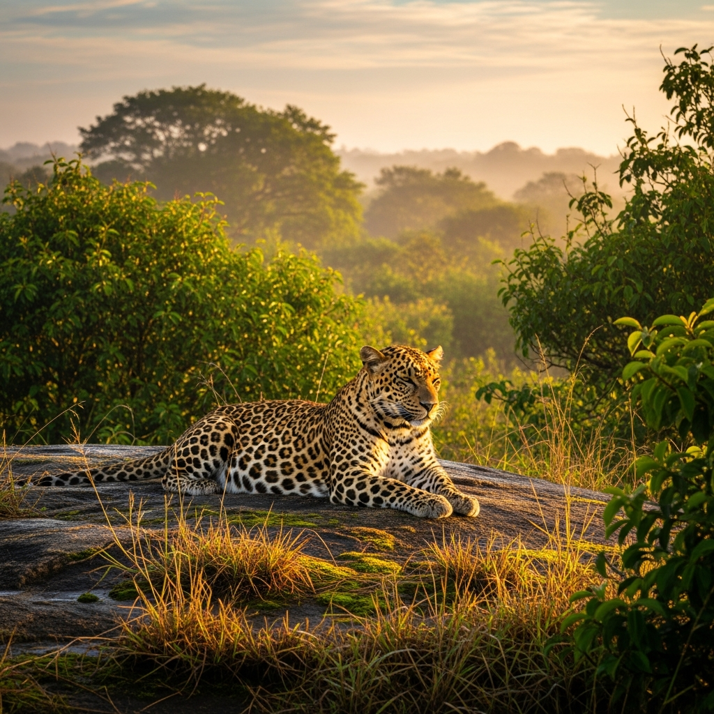 A Yala safari at sunrise is a truly unforgettable experience that offers a unique opportunity to witness the majesty of Sri Lanka's wildlife in its natural habitat. With its golden light, cooler temperature, and cats on rocks, it's the perfect time to spot the elusive leopards and other wildlife species. Plan your full visit at visitkataragama.com